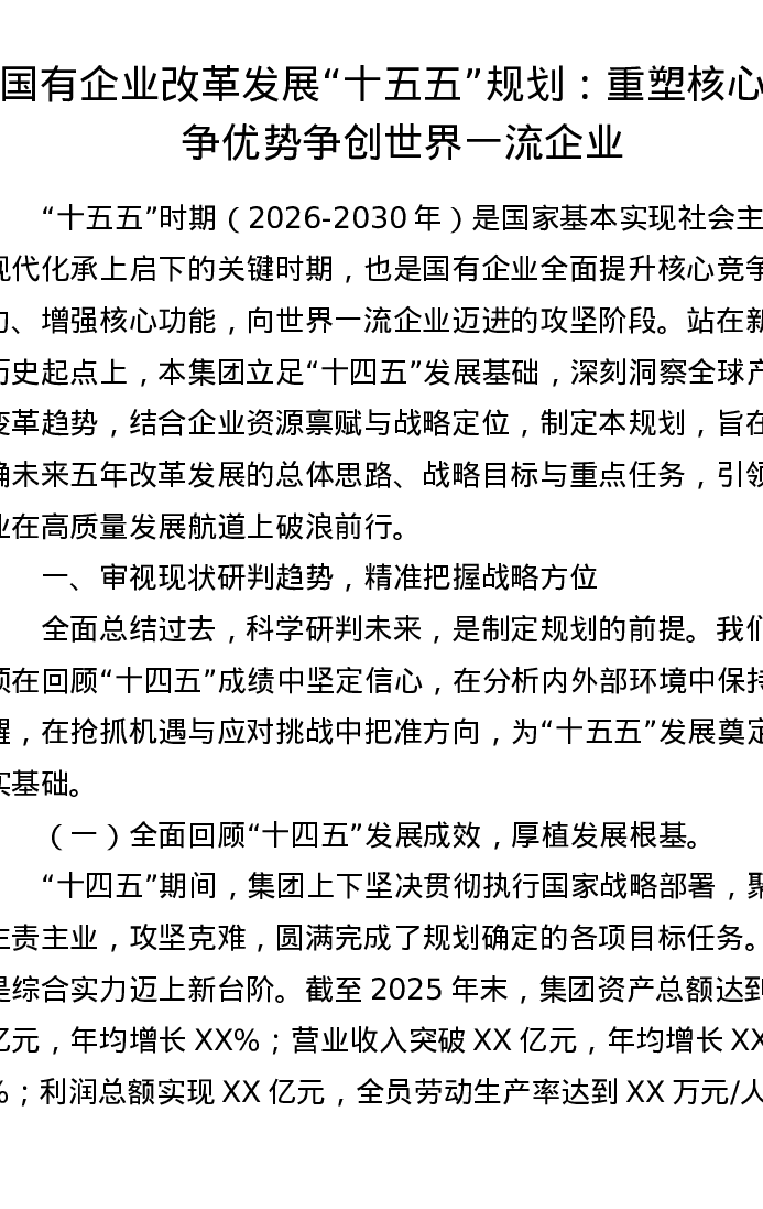 国有企业改革发展十五五规划:重塑核心竞争优势 争创世界一流企业
