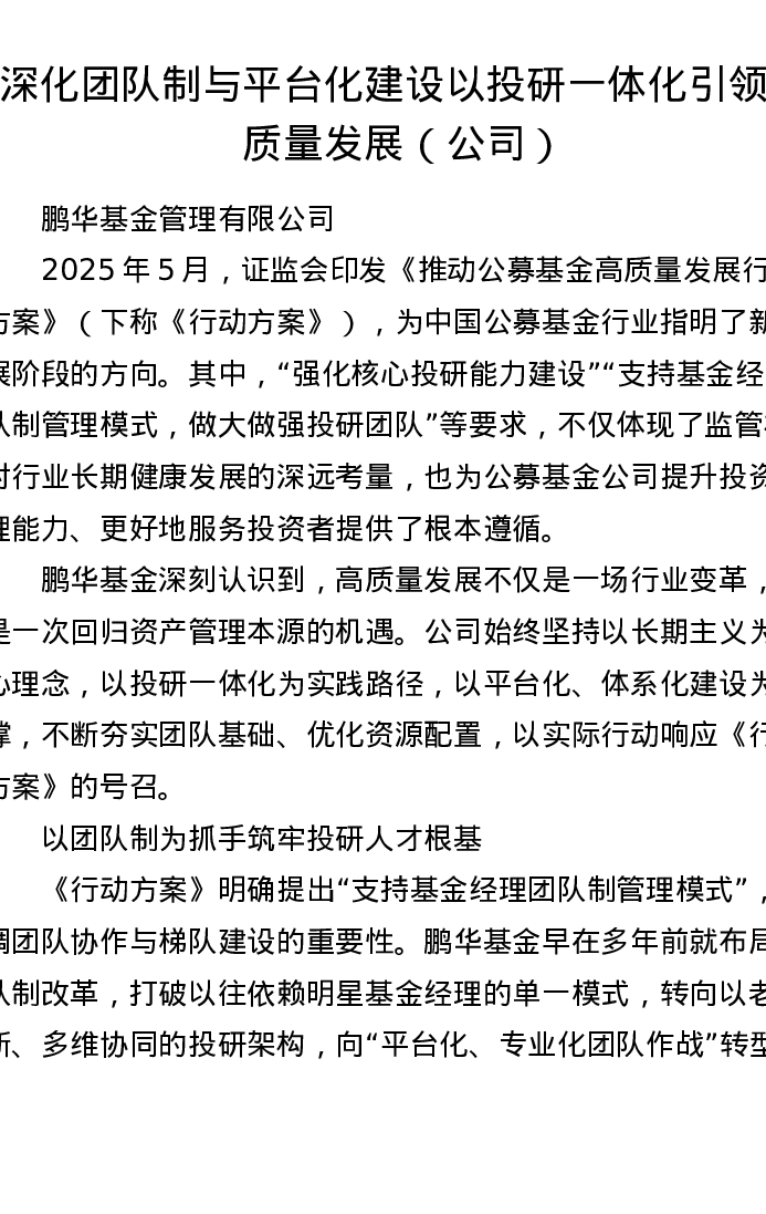 深化团队制与平台化建设 以投研一体化引领高质量发展(公司)