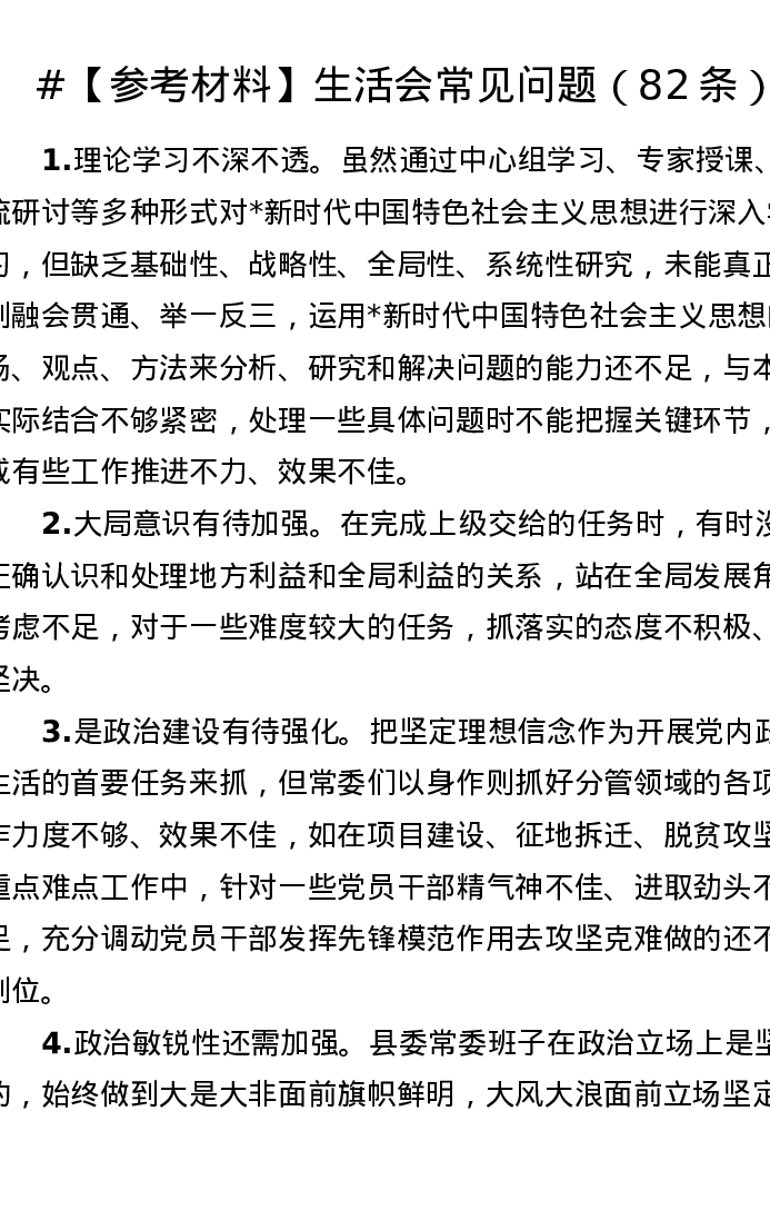 【参考材料】生活会常见问题(82条)