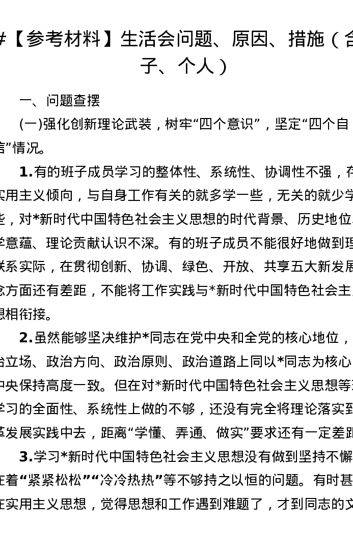 【参考材料】生活会问题、原因、措施(含班子、个人)