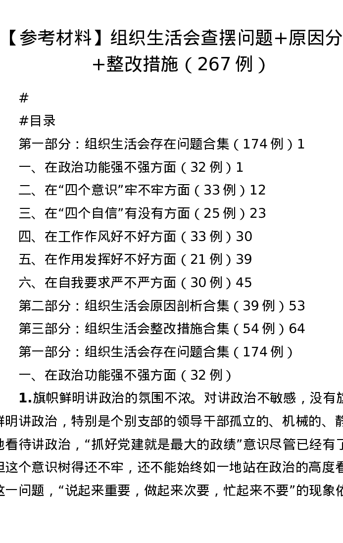 【参考材料】组织xxx查摆问题+原因分析+整改措施(267例)