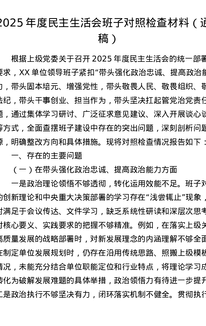 【原创】2025年度xxxxx班子对照检查材料(通用稿)