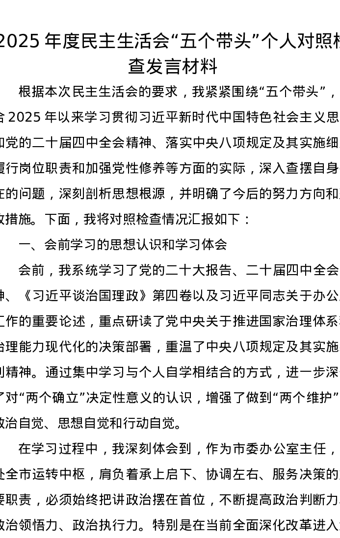2025年度xxxxx五个带头个人对照检查发言材料