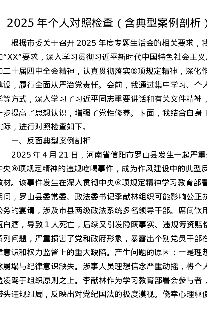 2025年个人xxxxx对照检查(含典型案例剖析)【五个带头】