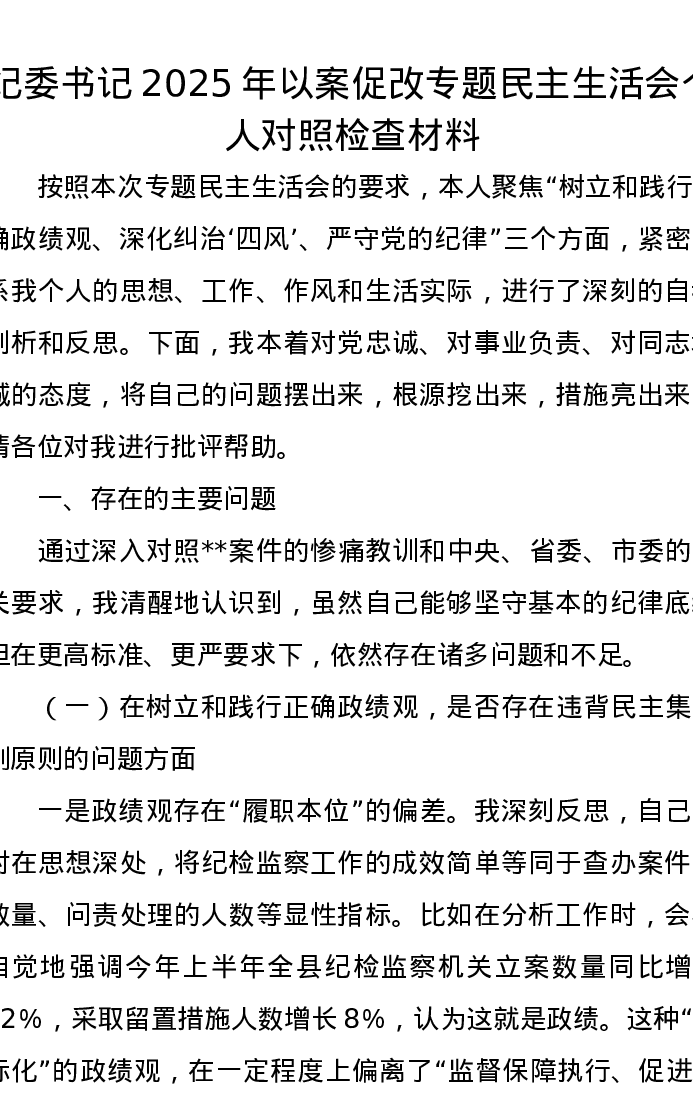 纪委书记2025年以案促改专题xxxxx个人对照检查材料