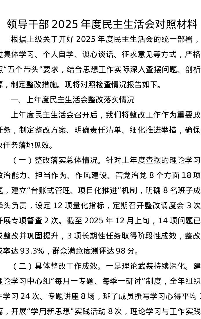 领导干部2025年度xxxxx对照材料(五个带头)