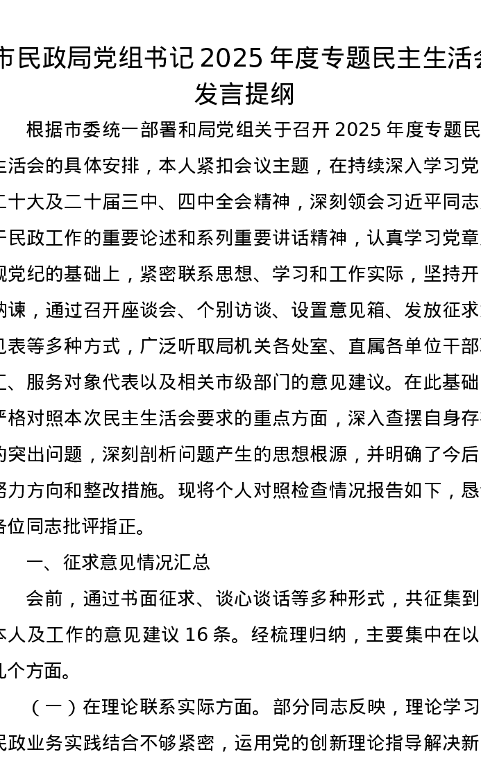 市民政局党组书记2025年度专题xxxxx发言提纲(五个带头)