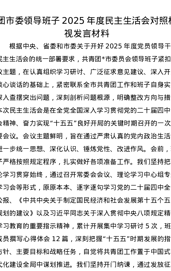 团市委领导班子2025年度xxxxx对照检视发言材料(五个带头)
