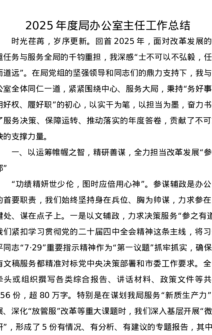 2025年度局办公室主任工作总结