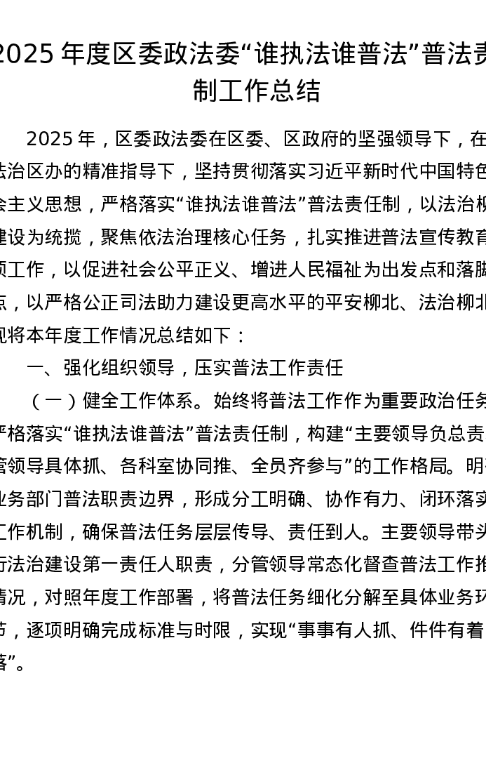 2025年度区委政法委谁执法谁普法普法责任制工作总结
