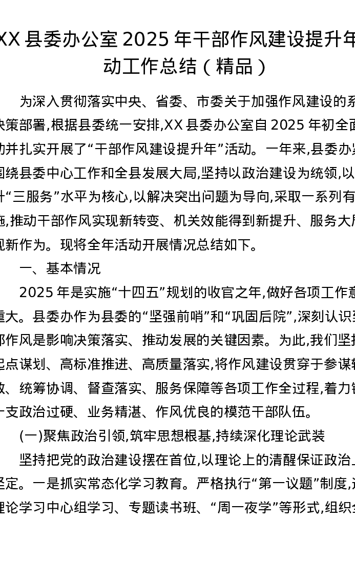 XX县委办公室2025年干部作风建设提升年活动工作总结