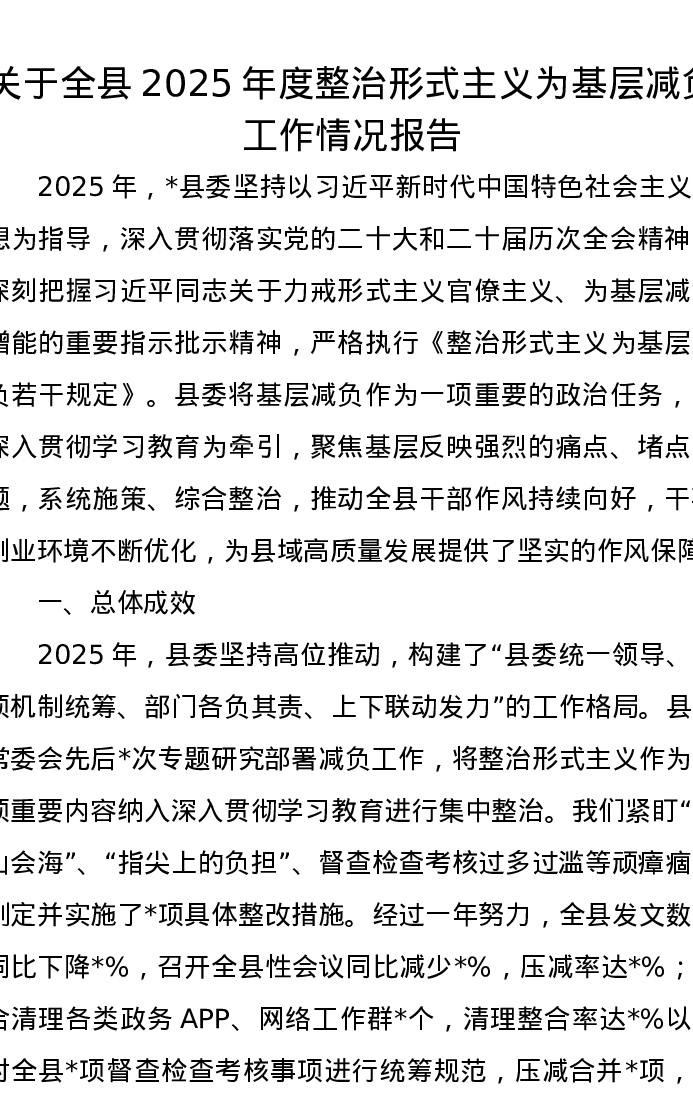 关于全县2025年度整治形式主义为基层减负工作情况报告