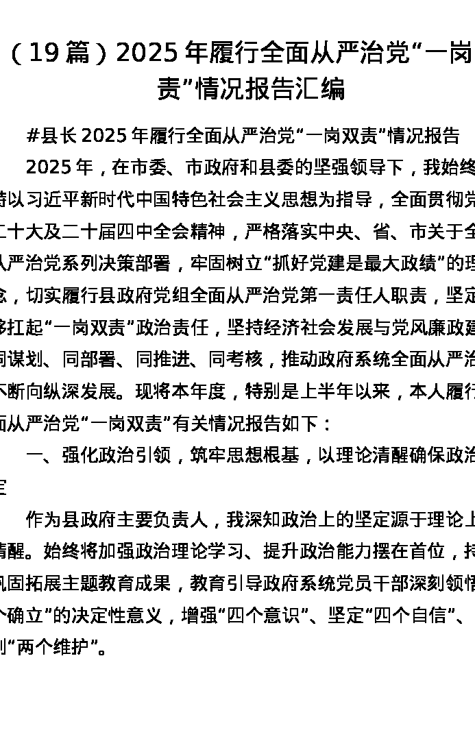 县长2025年履行全面从严治党一岗双责情况报告