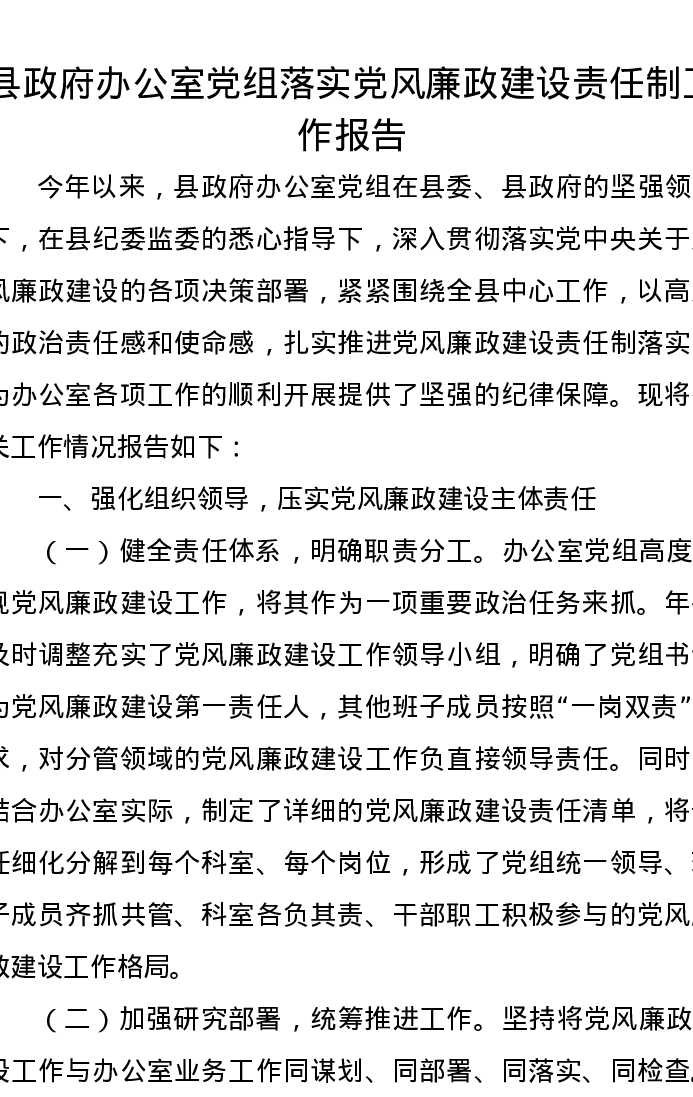 县政府办公室党组落实党风廉政建设责任制工作报告