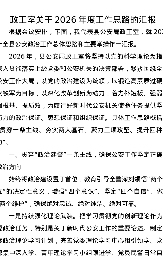 政工室关于2026年度工作思路的汇报