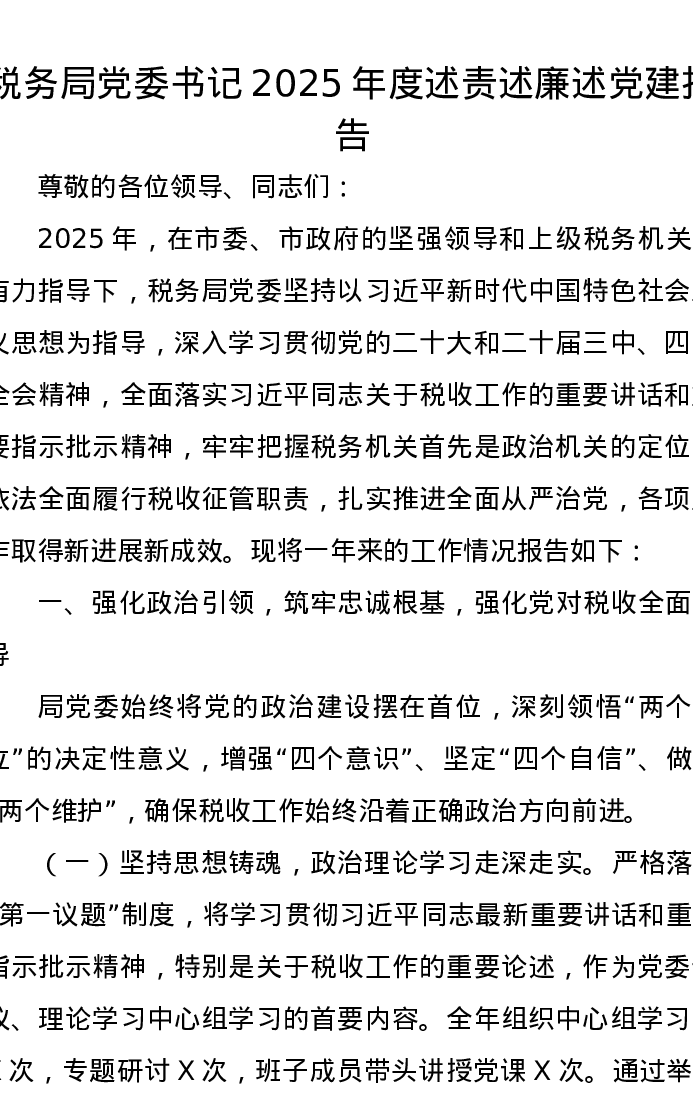 税务局党委书记2025年度述责述廉述党建报告