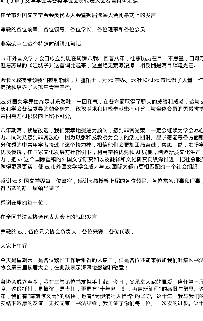 汇编:文学学会等各类学会会员代表大会发言3篇