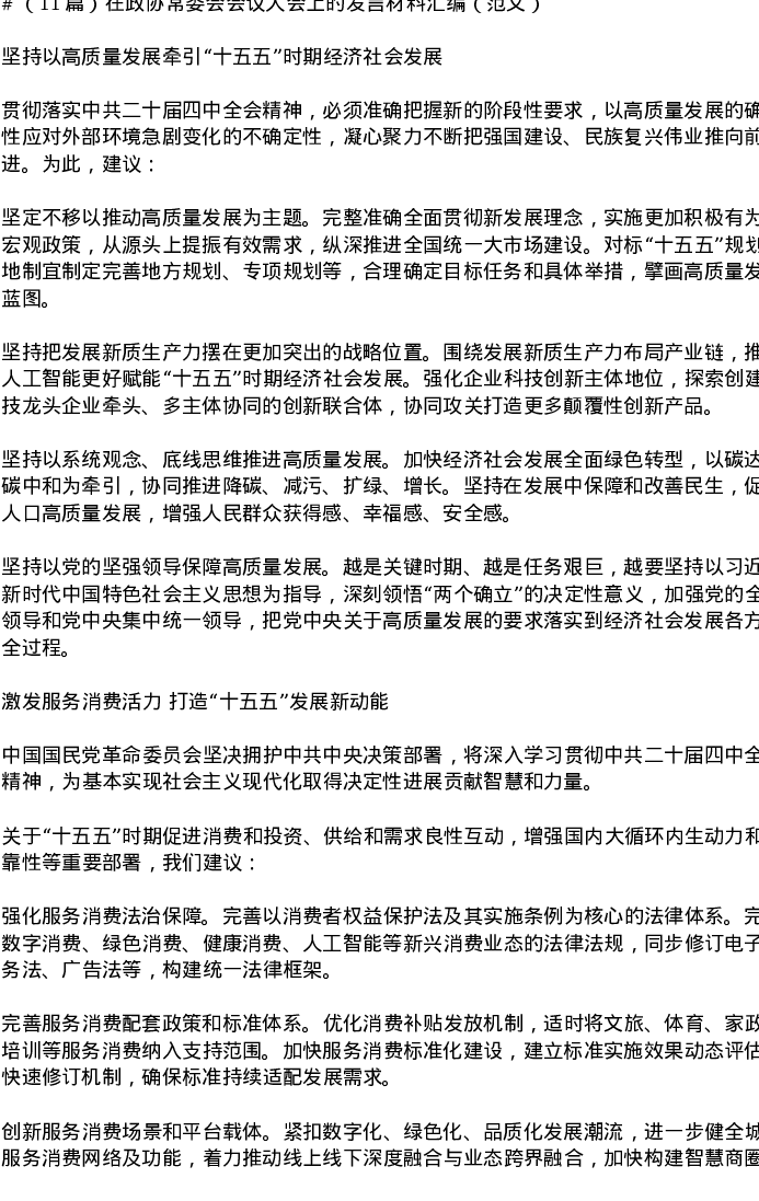 汇编:在政协常委会会议大会上的发言材料11篇(范文)
