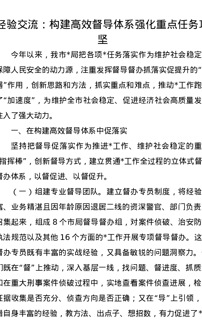 经验交流发言: 构建高效督导体系 强化重点任务攻坚