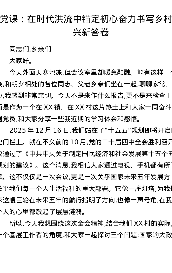 党课:在时代洪流中锚定初心 奋力书写乡村振兴新答卷