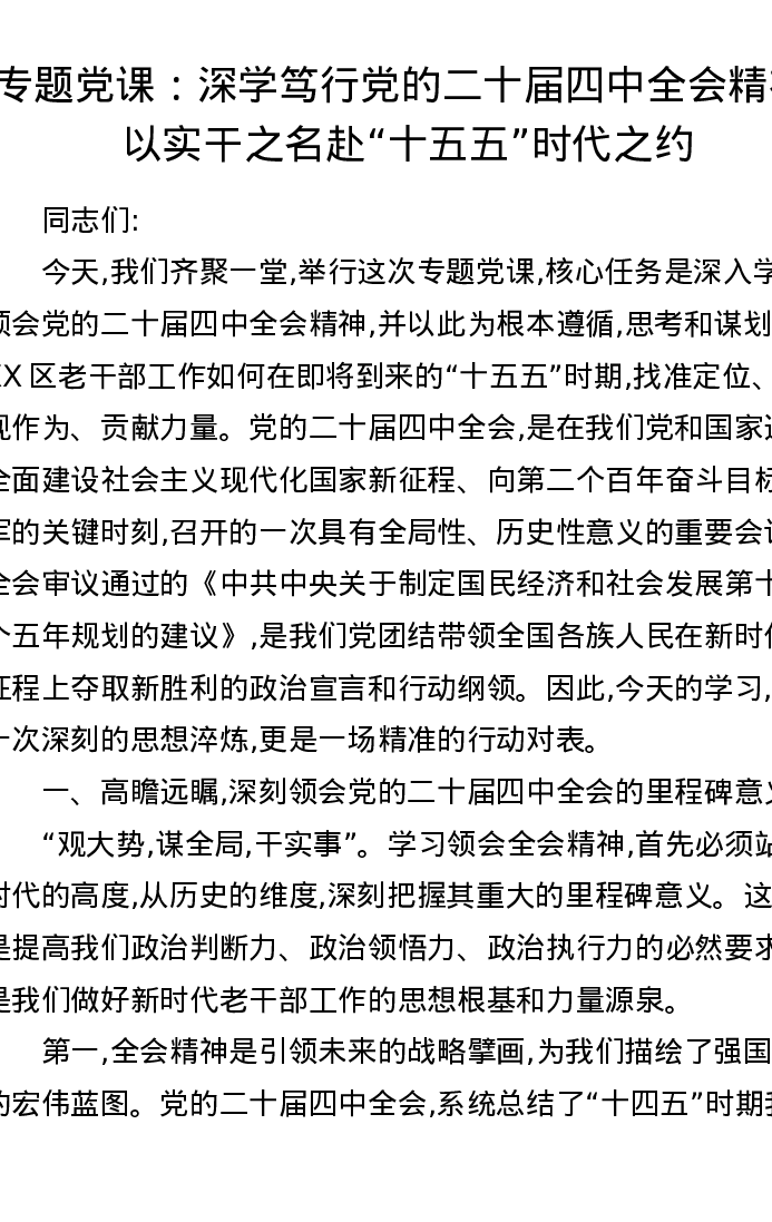 专题党课:深学笃行党的二十届四中全会精神,以实干之名赴十五五时代之约