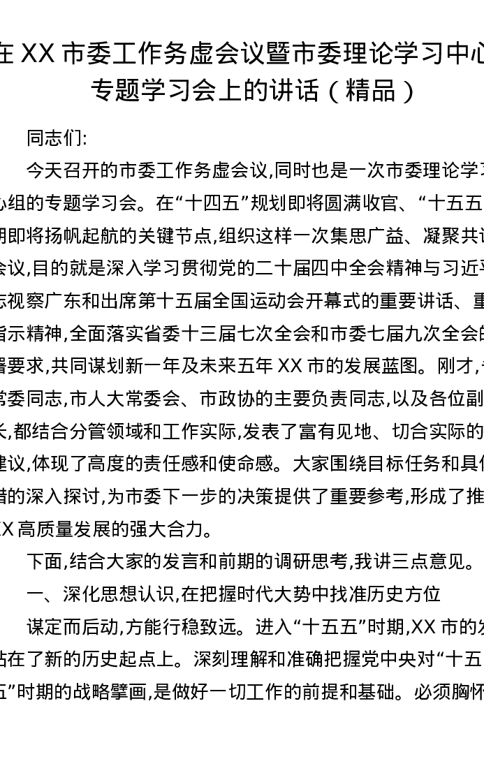 在XX市委工作务虚会议暨市委理论学习中心组专题学习会上的讲话