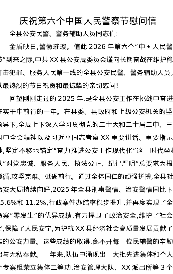 庆祝第六个中国人民警察节慰问信