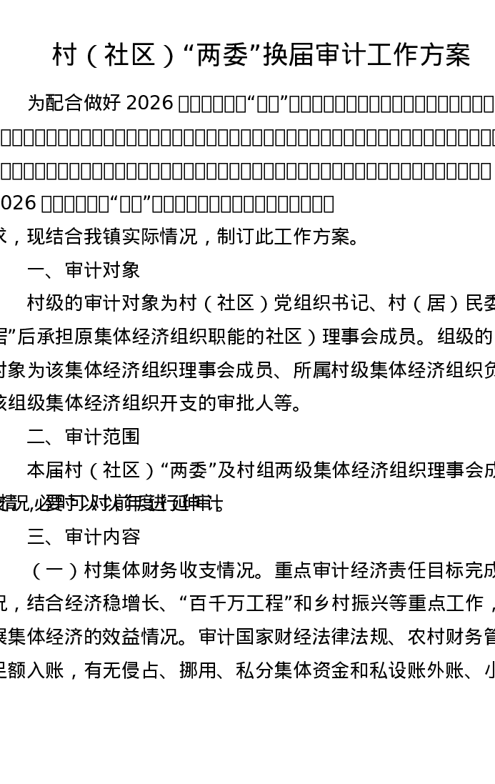 村(社区)两委换届审计工作方案
