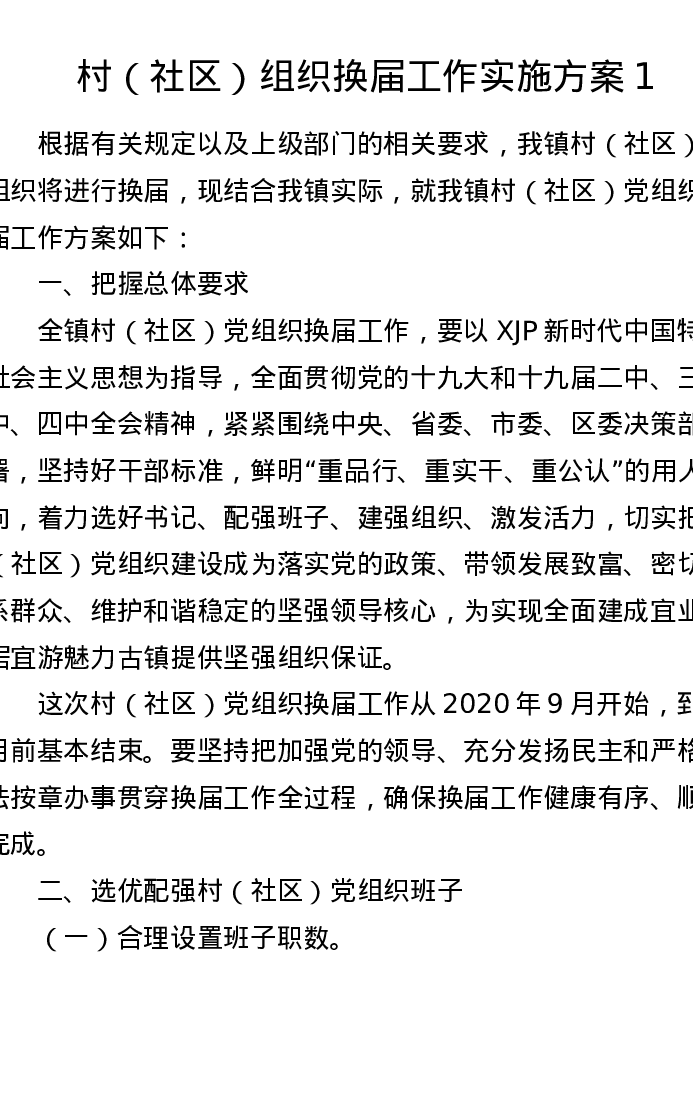 村(社区)组织换届工作实施方案1