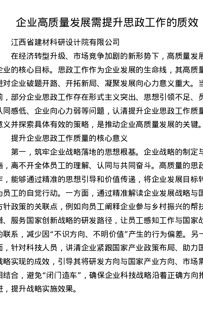 调研报告:企业高质量发展需提升思政工作的质效