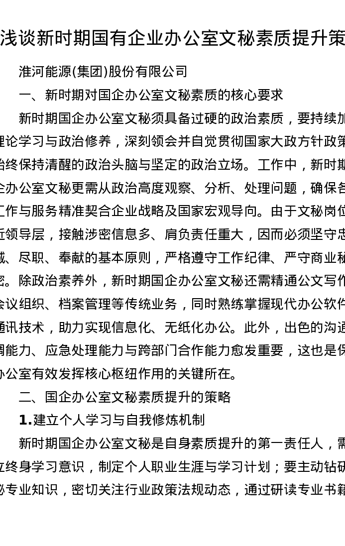 调研报告:浅谈新时期国有企业办公室文秘素质提升策略