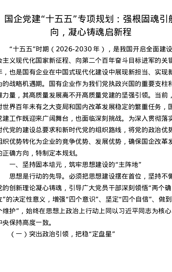 国企党建十五五专项规划:强根固魂引航向,凝心铸魂启新程