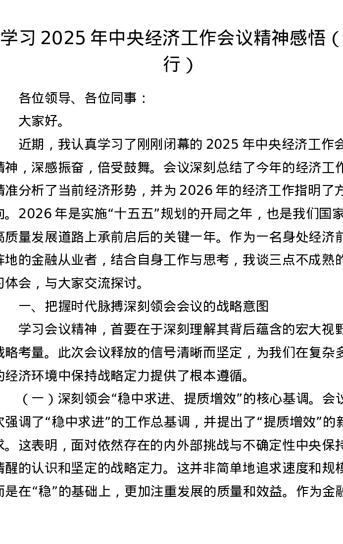 学习2025年中央经济工作会议精神感悟(银行)