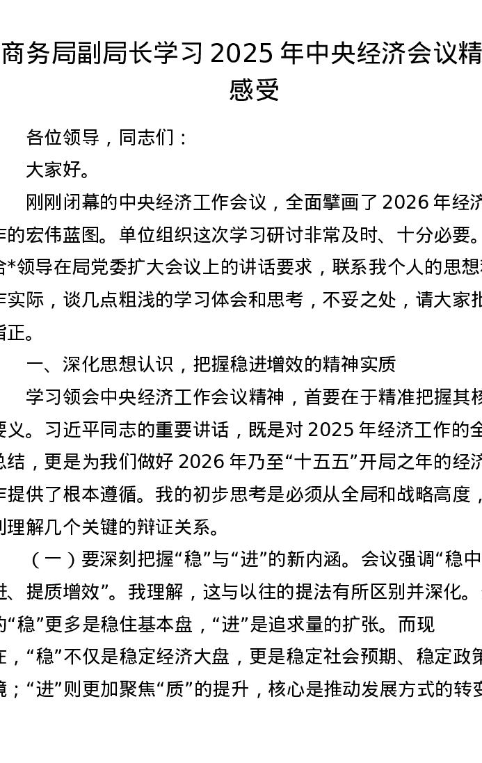 商务局副局长学习2025年中央经济会议精神感受