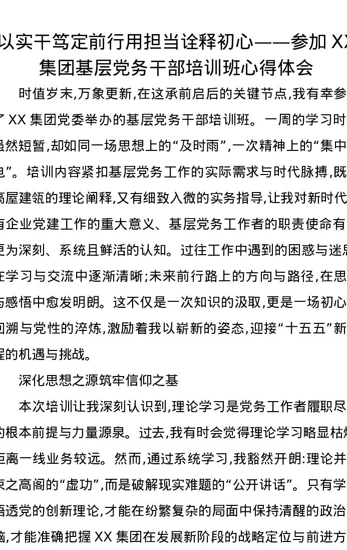 以实干笃定前行用担当诠释初心——参加XX集团基层党务干部培训班心得体会