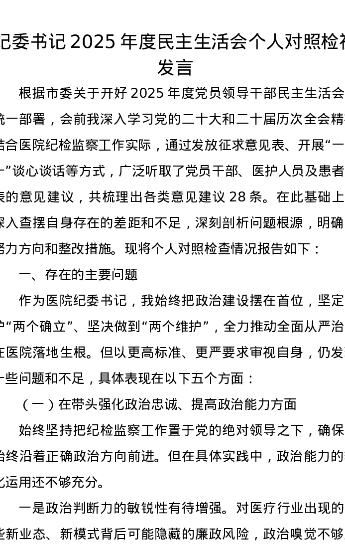 纪委书记2025年度xxxxx个人对照检视发言(五个带头)