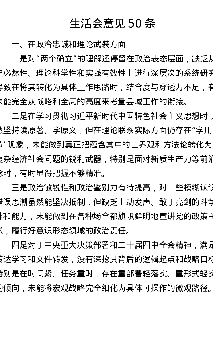 生活会意见50条