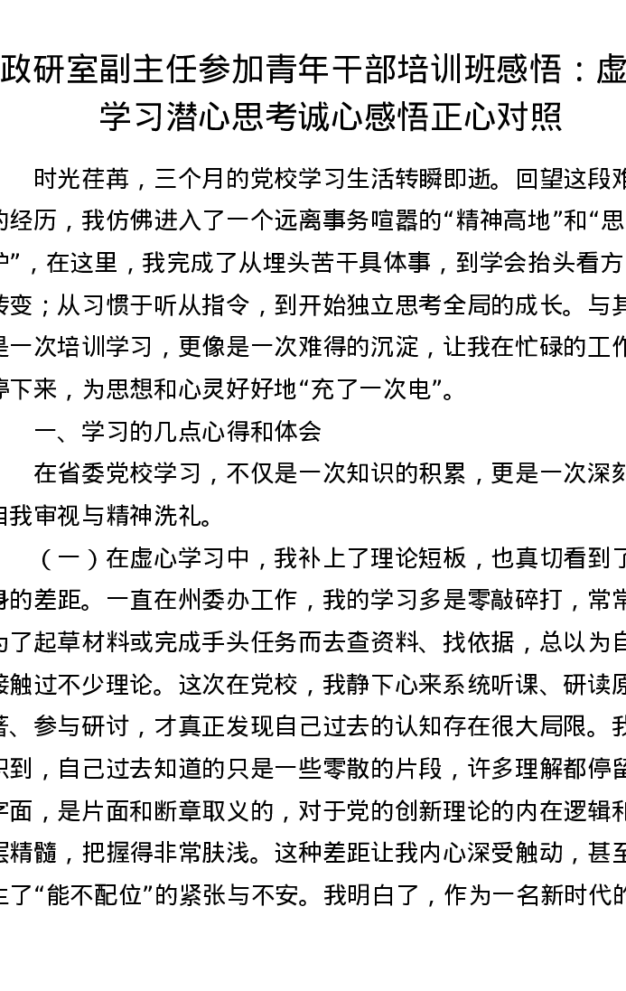 政研室副主任参加青年干部培训班感悟:虚心学习潜心思考诚心感悟正心对照