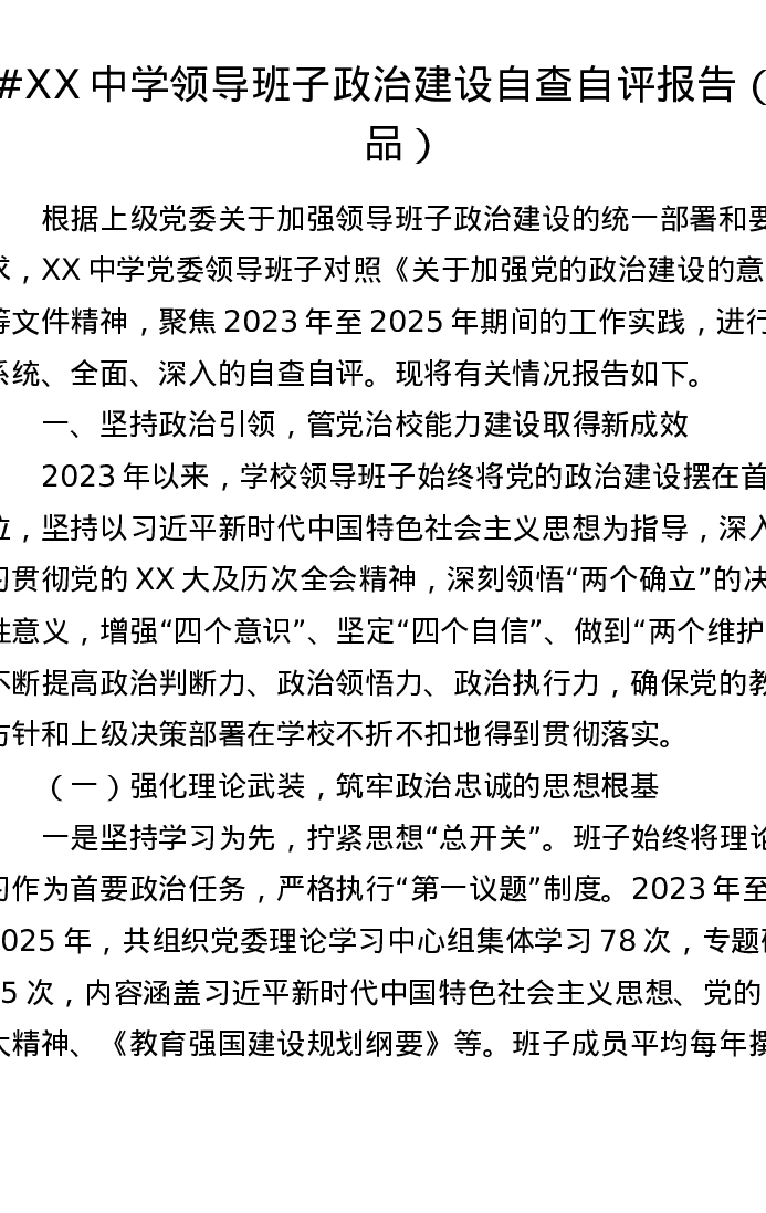 XX中学领导班子政治建设自查自评报告