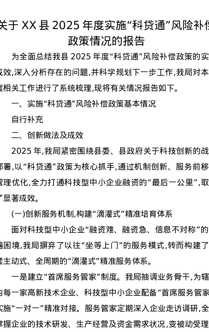 关于XX县2025年度实施科贷通风险补偿政策情况的报告