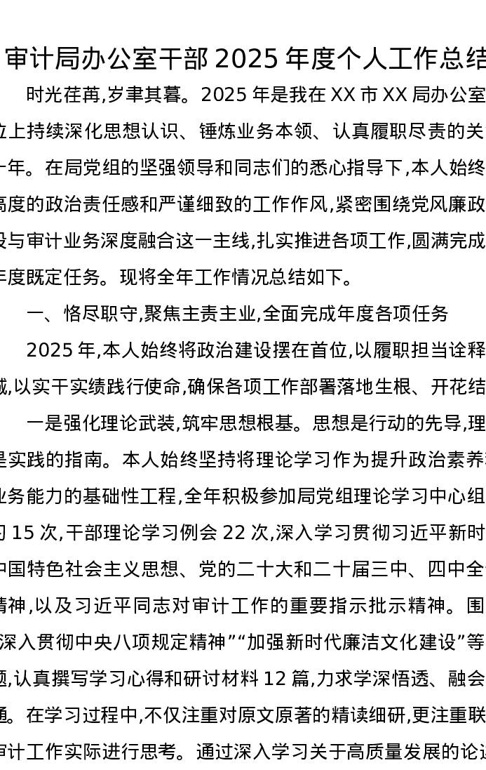 审计局办公室干部2025年度个人工作总结