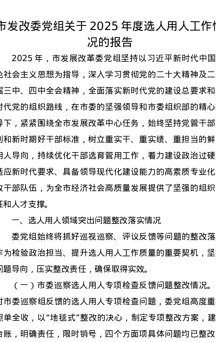 市发改委党组关于2025年度选人用人工作情况的报告