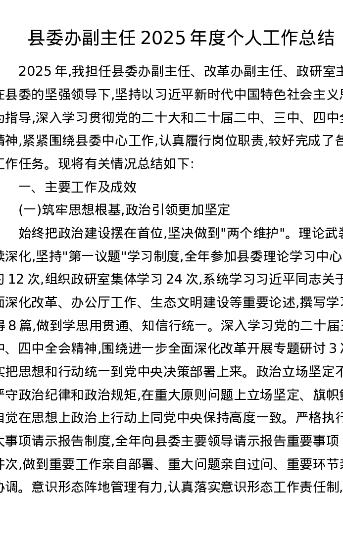 县委办副主任2025年度个人工作总结