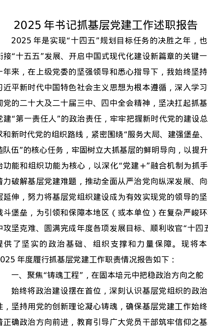 2025年书记抓基层党建工作述职报告