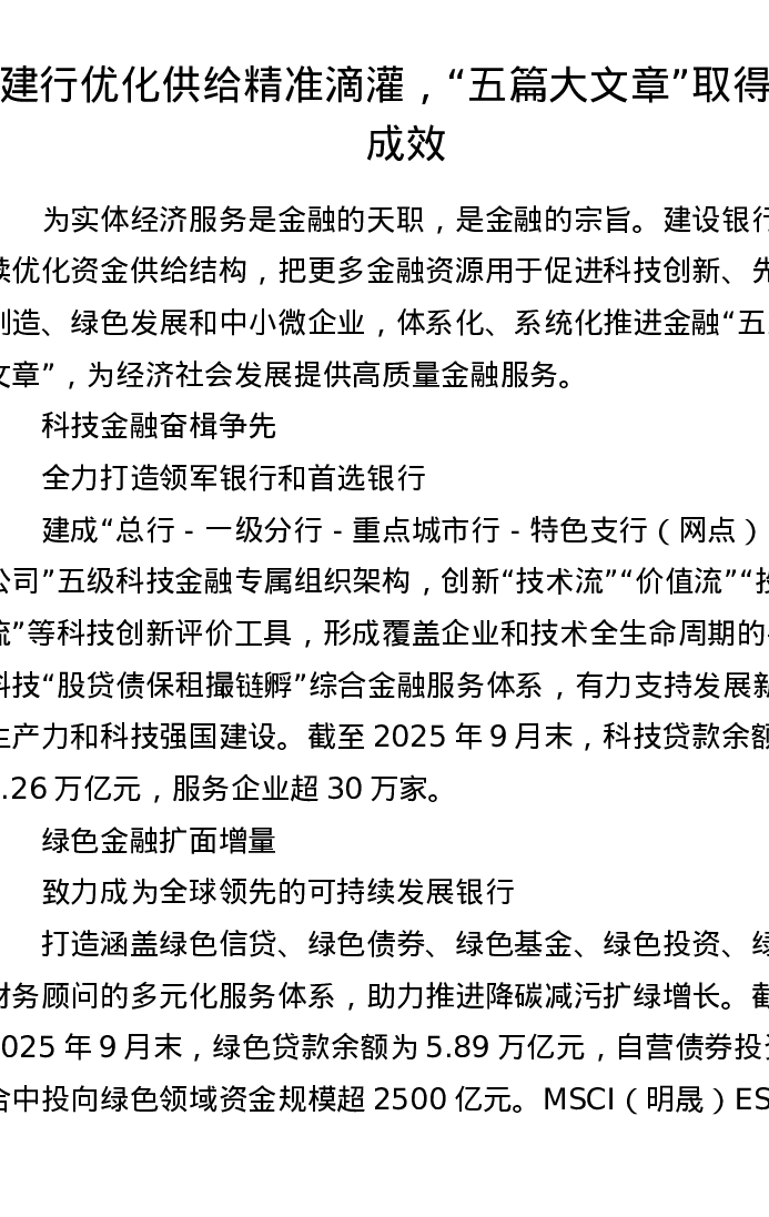 银行研讨发言:建行优化供给精准滴灌,五篇大文章取得新成效