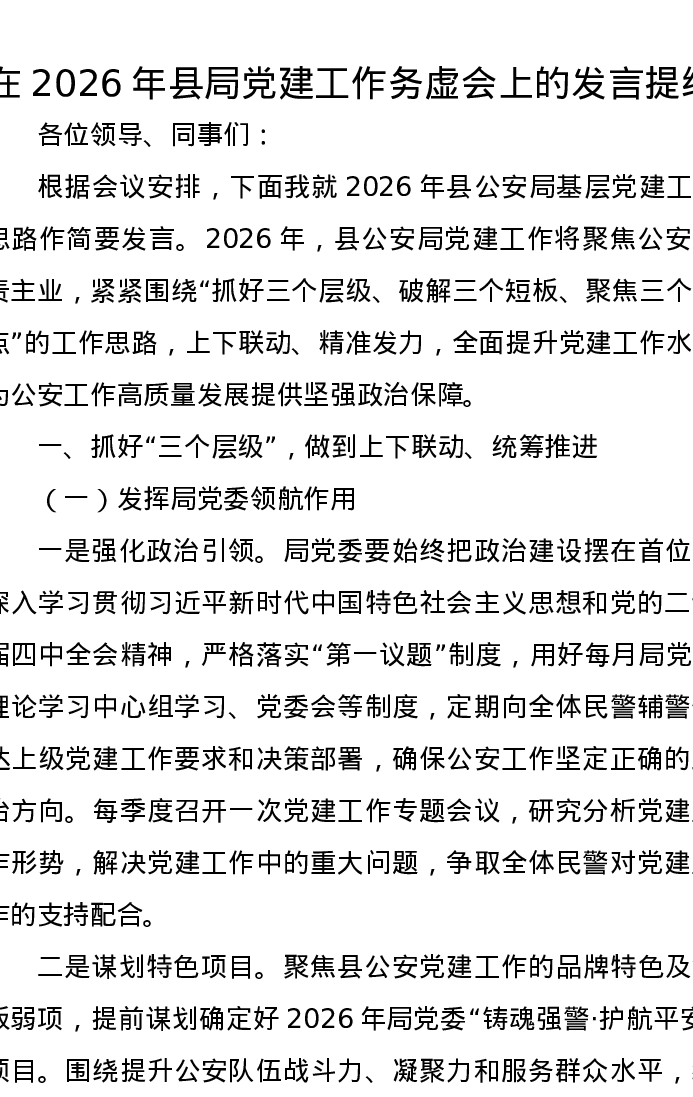 在2026年县局党建工作务虚会上的发言提纲