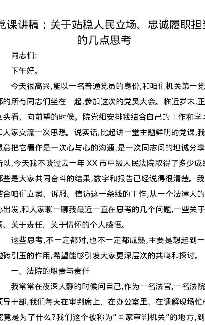 党课讲稿:关于站稳人民立场、忠诚履职担当的几点思考