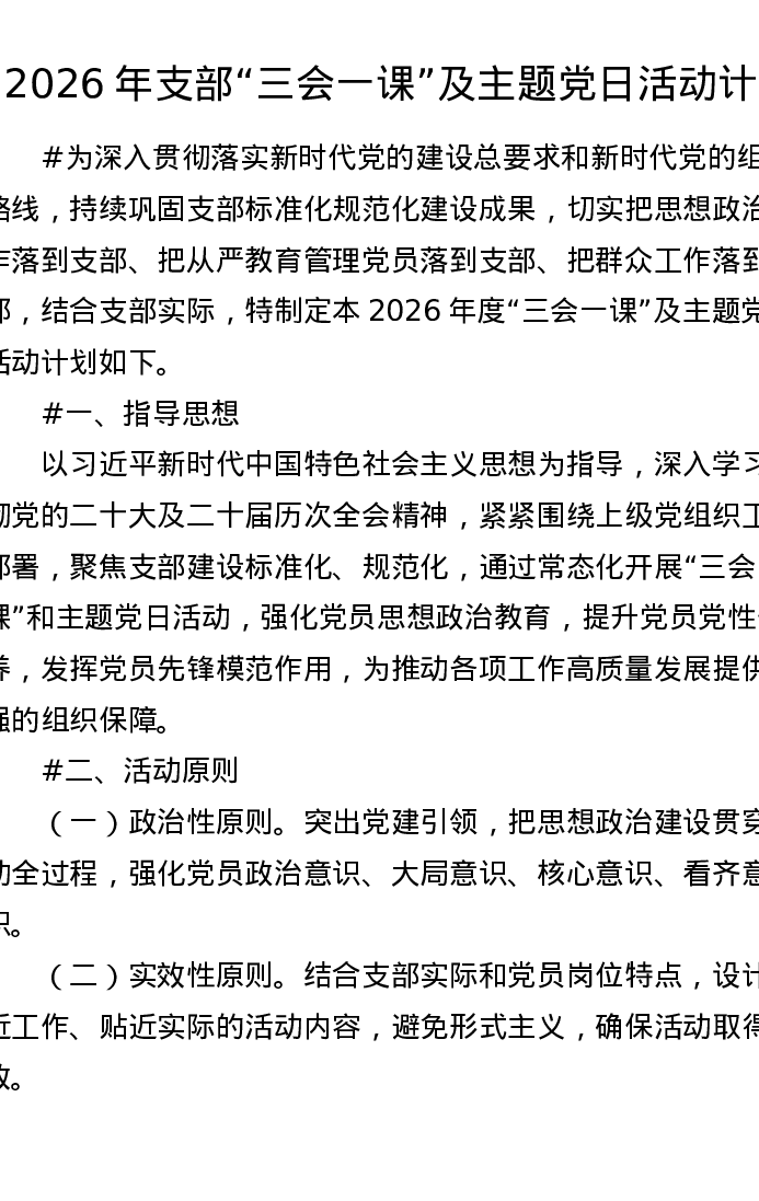 2026年支部三会一课及主题党日活动计划