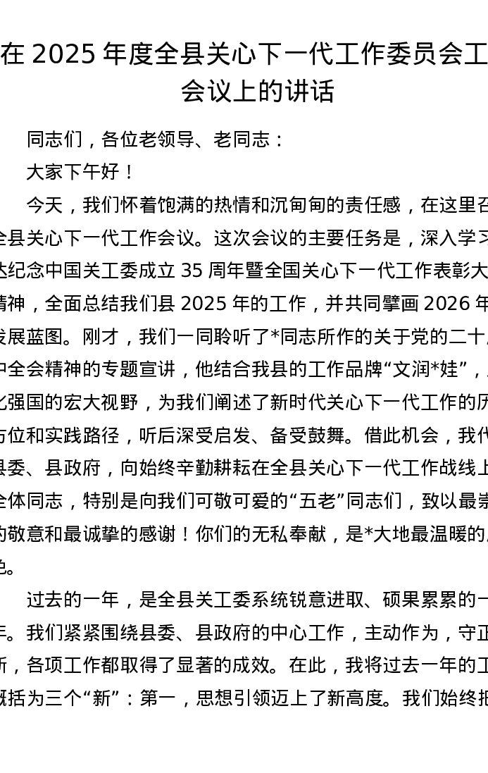 在2025年度全县关心下一代工作委员会工作会议上的讲话