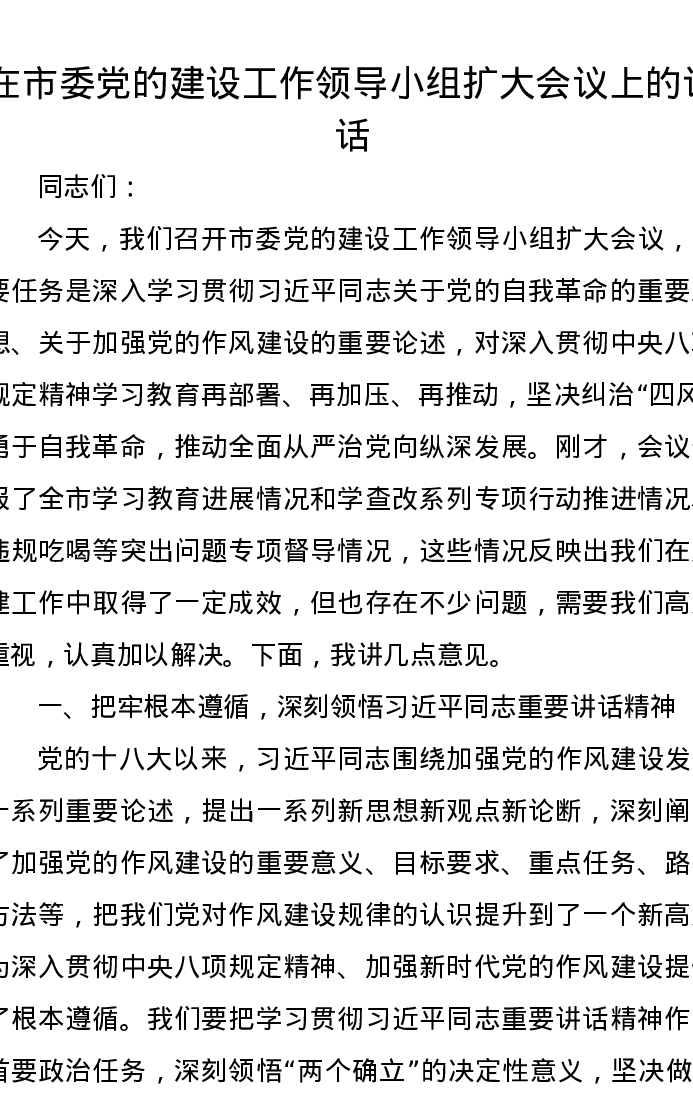 在市委党的建设工作领导小组扩大会议上的讲话(2)